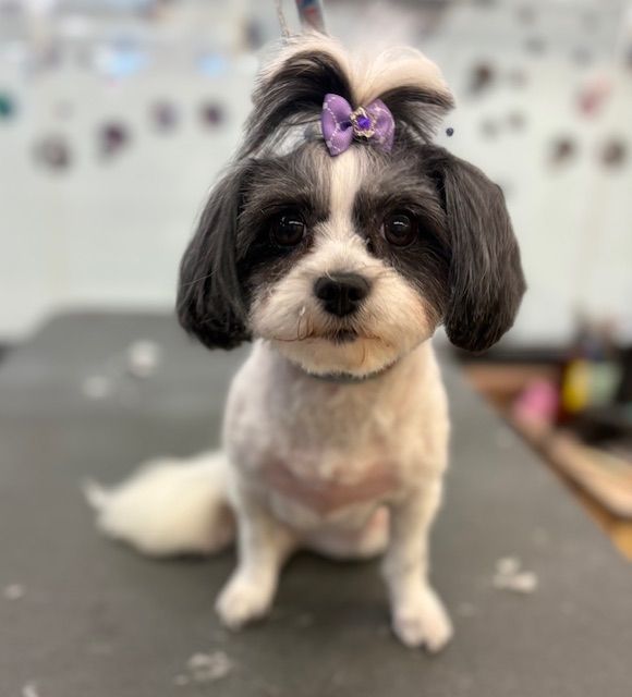 I provide a range of grooming services including a bath with brush and blowout, a bath and haircut, and a tidy-up service that includes a face, feet, and potty trim.